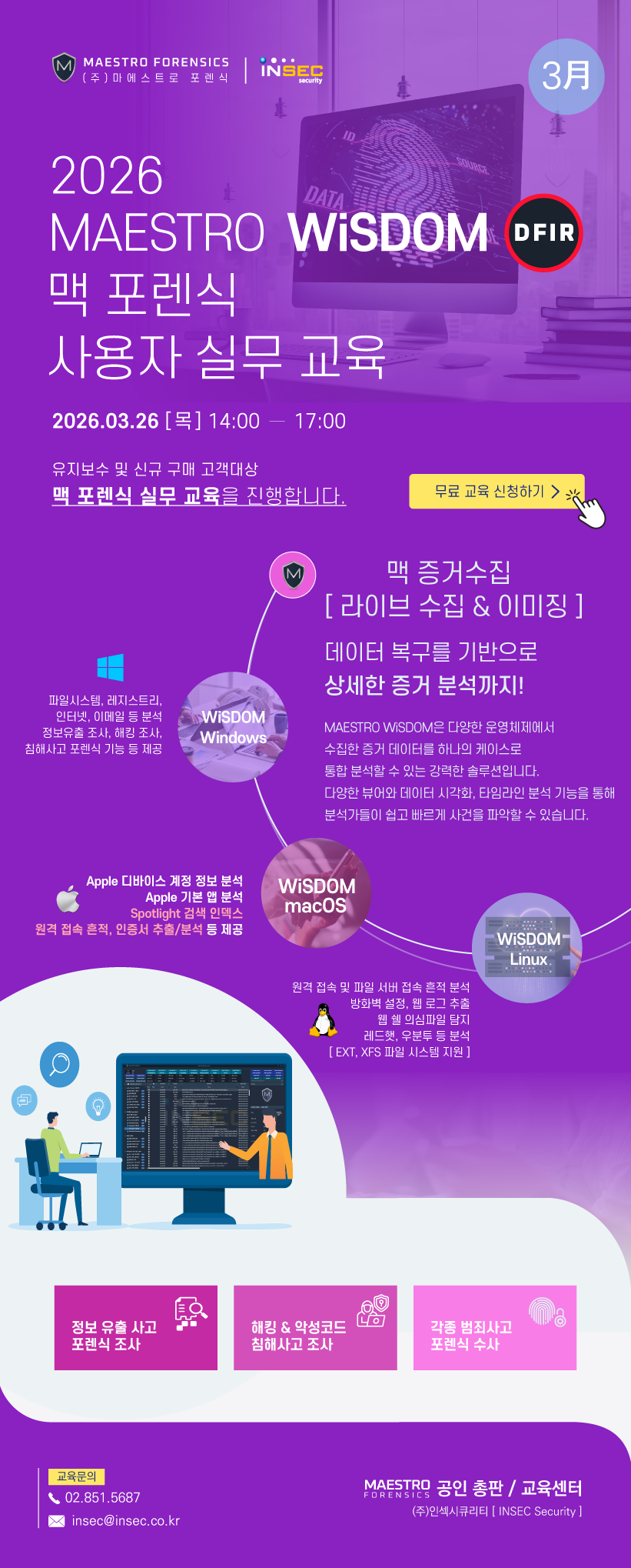 위즈덤 맥 포렌식 위즈덤 리눅스 포렌식 위즈덤 윈도우 포렌식 마에스트로 사이버 세미나 신청